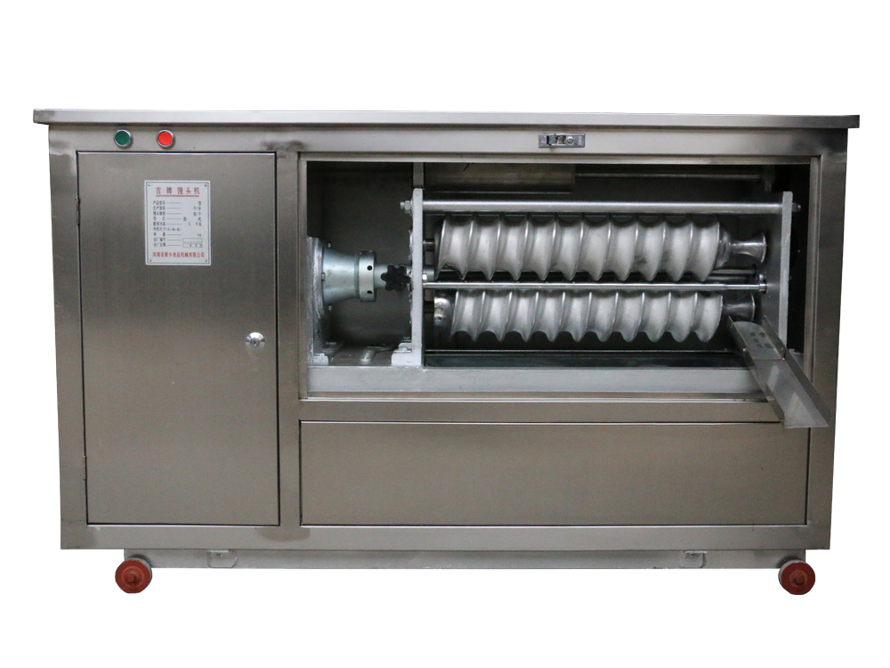 →饅頭生產(chǎn)線  →饅頭生產(chǎn)線配置  和面機(jī)、壓面機(jī)、饅頭機(jī)、搓饃機(jī)、蒸箱、蒸車  →功能說明  將醒發(fā)好的饅頭坯,用蒸車推進(jìn)蒸箱內(nèi)進(jìn)行蒸制,用戶可根據(jù)需要設(shè)置蒸制時間,到時自動切斷氣源?!  厣 ?、蒸制出的饅頭表面發(fā)亮,光澤度好?! ?、蒸箱內(nèi)部溫度均勻?! ?、蒸箱配有自動控制裝置,可實現(xiàn)自動進(jìn)、斷氣,有溫度、     時間數(shù)字顯示等。  4、蒸箱配有自動泄壓裝置,消除了不少安全隱患。  5、結(jié)構(gòu)簡潔,外觀美觀,熱效率高,節(jié)電,安全可靠,清潔衛(wèi)生?!  饕夹g(shù)參數(shù)產(chǎn)品型號-轉(zhuǎn)速(rpm)功率(kW)-外形尺寸(長×寬×高)ZRM350型每次5kg843壓輥調(diào)整間隙8-25mm1420×710×1110ZRM500型每次8kg844壓輥調(diào)整間隙8-25mm1350×860×1100MG60型饅頭重量為干粉重量60個/分鐘350/56/63/71/83/100(g)1550×500×985QHQZ280型140/280kg/h壓力≤0.025mpd--2320×1570×2300DQJ300型1000-8000個/h60-160g/個2.2-3520×650×1320